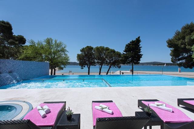 (ceny již zahnují aktuální platné slevy) Poloha: cca 350 m od centra města Biograd. Pláž: cca 50 m, betonová plata, cca 200 m oblázková a písečná, možnost zapůjčení lehátek a slunečníků na pláži (za poplatek). Bazén: venkovní vyhřívaný (27°C) bazén se sladkou vodou, vnitřní vyhřívaný bazén se sladkou vodou, lehátka a slunečníky u bazénu zdarma (v omezeném množství). Vybavení: klimatizovaná recepce, restaurace, terasa, kavárna, bary, market, směnárna, sejf na recepci (za poplatek), parkování u hotelu za poplatek 10€/den a parkování 150 m od hotelu za poplatek 8€/den (platba na recepci). Ubytování: 2lůžkové pokoje, sprcha/WC, TV/sat, klimatizace (comfort, 16603); 2lůžkové pokoje, sprcha/WC, TV/sat, klimatizace, balkon (superior, 16604); 2lůžkové pokoje, sprcha/WC, TV/sat, klimatizace (sgluse, comfort, 96798); vždy minibar, vysoušeč vlasů, sejf, telefon, Wi-Fi. Internet: Wi-Fi zdarma. Stravování: polopenze - snídaně a večeře formou bufetu nebo plná penze - snídaně, obědy a večeře formou bufetu. Sport a zábava: Aquatic Beach Club - denní a večerní animační program pro děti a dospělé v období 15.6.-15.9.2024, turistické stezky, stolní tenis, tenisové kurty (za poplatek); nedaleko možnost vodních sportů na pláži (za poplatek). Domácí mazlíčci: platba na recepci 20€/den (po předchozím potvrzení). Dětská postýlka: platba na recepci 8€/den (po předchozím potvrzení). Internetová adresa: www.ilirijabiograd.com Nabídka pro děti: animační programy, dětské hřiště. Autobusová doprava: možná za doplatek, v případě objednávky autobusové dopravy je odjezd autobusu z ČR v pátek a příjezd zpět do ČR v neděli. Check-in/check-out: po 14:00 hod./do 10:00 hod. Cena zahrnuje: