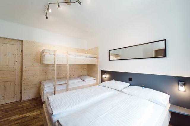 zařízení, balkon #trilo 4 Erzberg: 44 m² - 1 ložnice s manželskou postelí, menší ložnice s palandou pro 2 osoby, obývací pokoj s kuchyňským koutem, sociální zařízení, balkon #trilo 4 Erzberg Plus: 45 m² - 1 ložnice s manželskou postelí, ložnice se 2 samostanými lůžky, obývací pokoj s kuchyňským koutem a gaučem, sociální zařízení se sprchou a vířivou vanou, balkon #trilo 6 Pfaffenstein: 60 až 66 m² - ložnice s manželskou postelí či 2 samostatnými lůžky, ložnice s manželskou postelí a palandou pro 2 osoby, obývací pokoj s kuchyňským koutem, sociální zařízení, balkon #trilo 4 Reichenstein: 56 až 61 m² - ložnice s manželskou postelí, ložnice se 2 samostatnými lůžky, obývací pokoj s kuchyňským koutem, sociální zařízení se sprchou a infrasaunou, balkon #trilo 5/6 Reichenstein Plus: 60 až 63 m² - ložnice s manželskou postelí, ložnice s manželskou postelí a palandou pro 1 až 2 osoby, obývací pokoj s kuchyňským koutem, sociální zařízení se sprchou, vanou a infrasaunou, balkon #trilo 4 Reichenstein Superior: 59 m² - ložnice s manželskou postelí, ložnice se 2 samostatnými lůžky, obývací pokoj s kuchyňským koutem, sociální zařízení se sprchou, vířivou vanou a infrasaunou, balkon #trilo 5/6 Reichenstein Superior: 59 m² - v obsazení 5 os.: ložnice s manželskou postelí a 1 samostatným lůžkem, ložnice se 2 samostatnými lůžky, v obsazení 6 os.: ložnice s manželskou postelí, ložnice se 2 palandami pro 4 osoby či manželskou postelí a palandou pro 2 osoby, obývací pokoj s kuchyňským koutem, sociální zařízení se sprchou, vířivou vanou a infrasaunou, balkon #trilo 8 Pfaffenstein: 66 až 72 m² - ložnice s manželskou postelí a palandou pro 2 osoby, ložnice se 2 palandami pro 4 osoby; možná varianta i jako ložnice s manželskou postelí a palandou pro 2 osoby a 2 ložnice se 2 samostatnými lůžky, obývací pokoj s kuchyňským koutem, sociální zařízení, balkon #quadrilo 8 Leopoldstein: 77 až 82 m² - ložnice s manželskou postelí, ložnice s manželskou postelí a 1 samostatným lůžkem či palandou, ložnice s 1 samostatným lůžkem a palandou či manželskou postelí, obývací pokoj s kuchyňským koutem, 2x sociální zařízení, balkon #quadrilo 10 Leopoldstein: 98 m² - ložnice s manželskou postelí, 2 ložnice s manželskou postelí palandou pro 2 osoby, obývací pokoj s kuchyňským koutem, 2x sociální zařízení, 2x balkon #quadrilo 8 Leopoldstein Superior: 87 až 90 m² - 2 ložnice s manželskou postelí, ložnice s manželskou postelí a palandou, obývací pokoj s kuchyňským koutem, 2x sociální zařízení, balkon #quadrilo 12 Präbichl: 134 m² - 2 ložnice s manželskou postelí a palandou pro 2 osoby, ložnice se 2 palandami pro 4 osoby, obývací pokoj s kuchyňským koutem, 3x sociální zařízení, balkon; apartmán má 2 podlaží #quintilo 12 Präbichl: 164 m² - 1. podlaží: obývací pokoj s kuchyňským koutem, 2. podlaží: 2 ložnice s manželskou postelí, ložnice s manželskou postelí a palandou pro 2 osoby, ložnice se 2 palandami pro 4 osoby, 4x sociální zařízení, balkon #Clubhaus 27: 270 m² - 1. podlaží: prostorná obývací kuchyň a jídelnou, jídelna, 3 multifunkčně využitelné obytné/společenské místnosti, toalety (WC a umyvadla), wellness s prostornou saunou, sociální zařízení a terasa 40 m² 2. a 3. podlaží: 2 ložnice se 2 palandami pro 4 osoby, 2 ložnice se 2 samostatnými lůžky, 3x ložnice s manželskou postelí a palandou pro 2 osoby, ložnice s 1 samostatným lůžkem a palandou pro 2 osoby; 4x sociální zařízení |