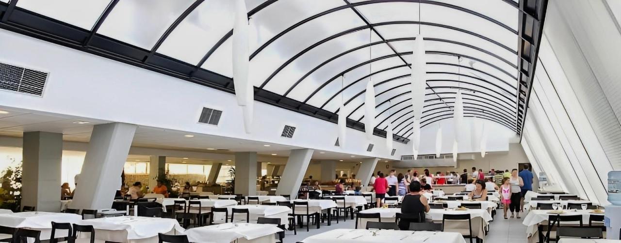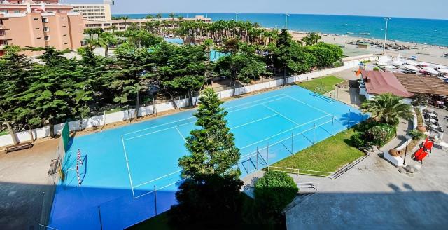 368 pokojů, 7 pater, vstupní hala s recepcí, restaurace a bar. Venku 2 bazén s lehátky a slunečníky zdarma, bar, osušky oproti kauci. Parkoviště za poplatek.