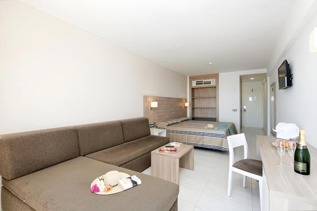 • Dvoulůžkový pokoj (DR): koupelna/WC (vysoušeč vlasů), klimatizace, telefon, TV/sat., minilednička, trezor za poplatek, rozkládací pohovka, balkon nebo terasa.