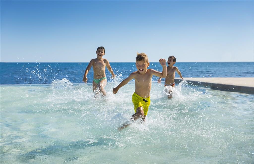 kol a člunů, vodní sporty. Moderní sportovní hala pro tréninky a soutěže, četné tenisové kurty a fotbalová hřiště - to vše jen 5 minut chůze od Aminess Laguna Animační programy pro děti a živá hudba v období hlavní sezóny. V nedalekém Novigradu Aquapark Istralandia. |